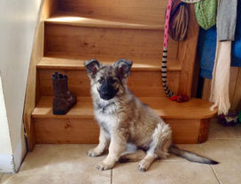 Maloïa Comme Chiens et Loups est une très belle femelle argentée clair. C'est une nuance qui m'a immédiatement émerveillée quand j'ai découvert la race et j'ai alors tout de suite rêvé d'avoir une chienne de cette couleur. Elle vient de chez Corinne et Jean-Pierre, de l'élevage Comme Chiens et Loups situé à St Etienne le Molard. On a eu un véritable coup de coeur pour cet élevage et ceux qui l'ont créé , ils sont au top!!