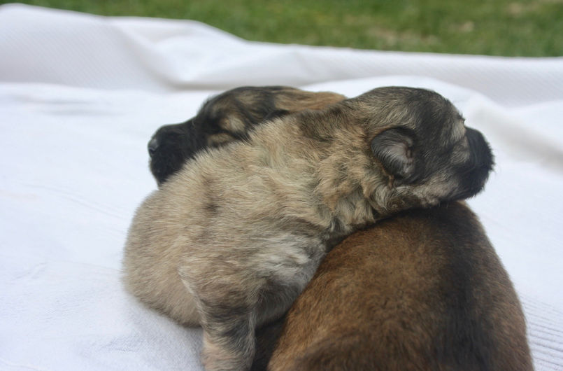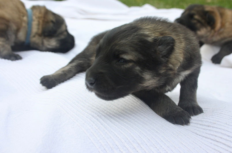 Nos petits loups ont eu 2 semaines!! Nous découvrons avec joie leur petits yeux qui se sont ouverts. Ils explorent de plus en plus leur environnement et ils commencent à marcher pour de vrai!! (bon d'accord, il y a encore quelques loupés qui terminent sur le nez ou en roulade mais de très très net progrès!!)